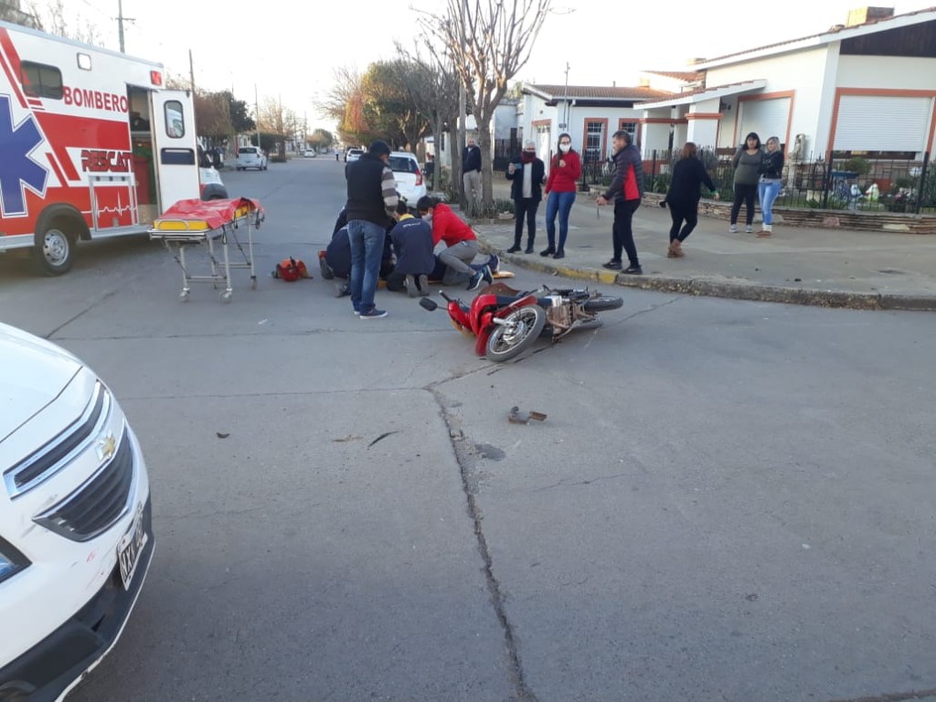 Como consecuencia del impacto la motociclista perdió el equilibrio y cayó al suelo. Fue asistida en el lugar por Personal de Bomberos y luego fue trasladada al Hospital Municipal para una mejor atención. Aparentemente se trataría de lesiones leves.