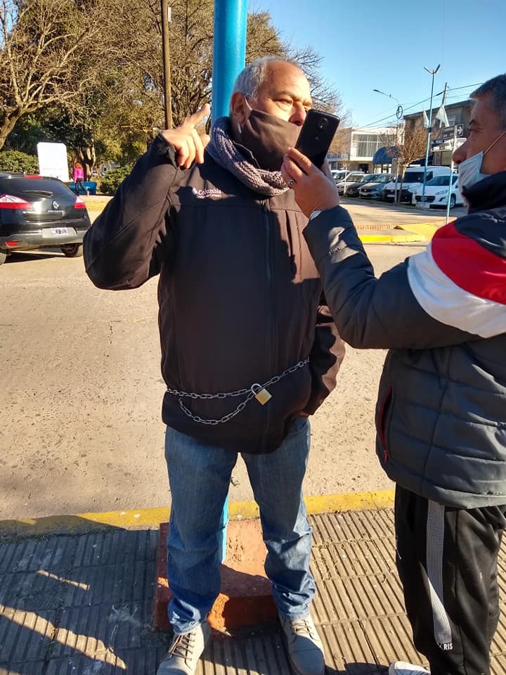 Uno de los empleados Municipales cesanteados de la Municipalidad de Corral de Bustos Ifflinger, Domingo Manavella, se encadenó frente al Municipio en horas de la mañana del lunes pidiendo que lo reincorporen al trabajo.