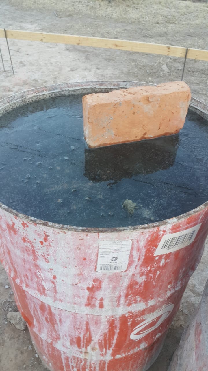 Un albañil de nuestra localidad, que comienza la jornada muy temprano, nos envió una foto y un video muy ilustrativo de la helada de esta mañana. En la foto se puede observar como la escarcha de un tambor de agua soporta el peso de un ladrillo.