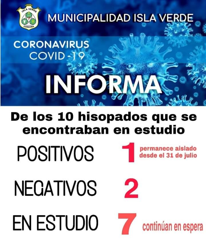 En la tarde del lunes también se confirmó el primer caso de coranavirus en la localidad de isla verde. Así mismo, Monte Buey llegó a los 50 casos desde el comienzo del brote.
