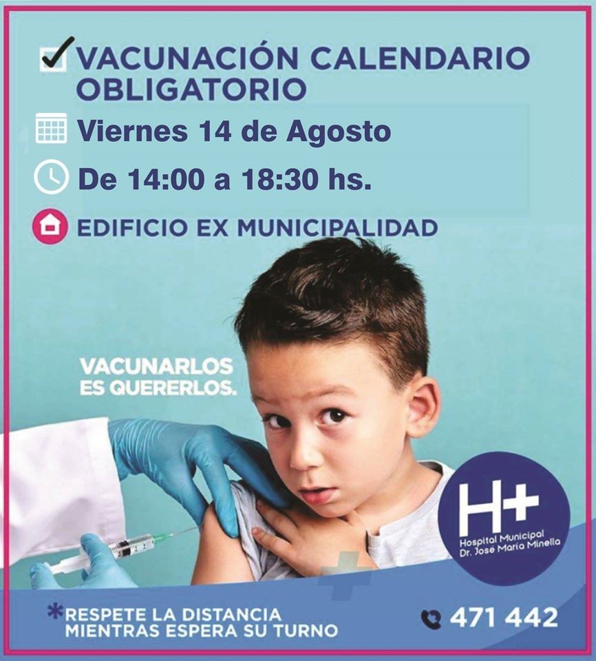El Hospital Municipal de Monte Maíz informa a la población que el viernes 14 de agosto se llevará a cabo otra jornada de vacunación correspondiente al calendario Obligatorio.