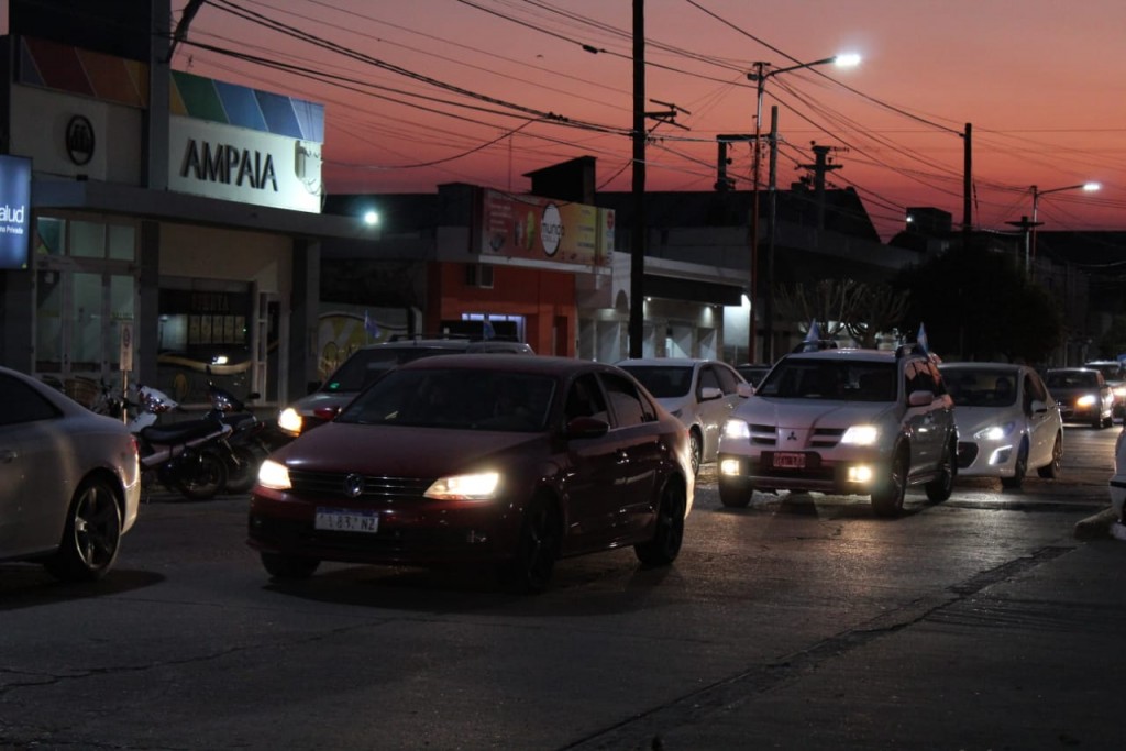 En un domingo de mucho movimiento de gente en el centro de Monte Maíz las bocinas de decenas de autos se hicieron escuchar tras la convocatoria que se hizo a través de whatsapp desde hace casi una semana.