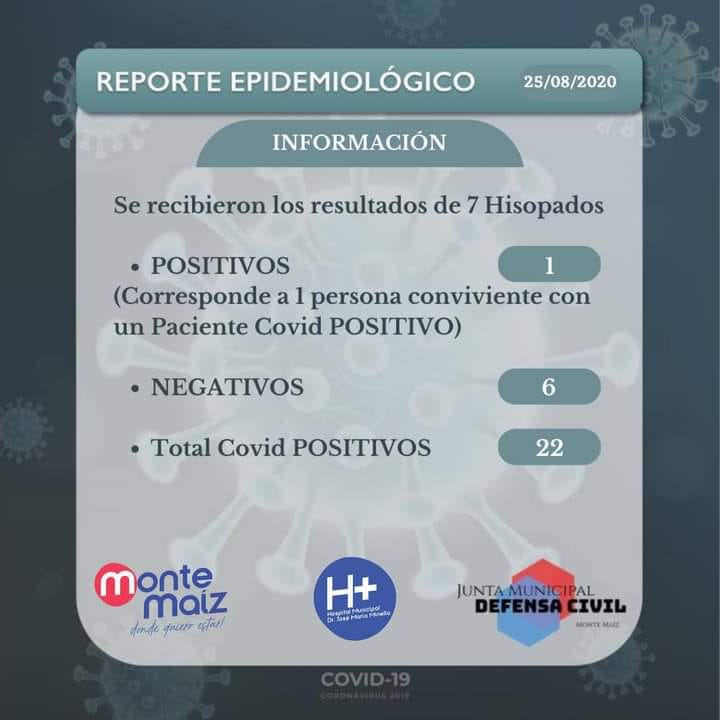 En horas del mediodía de hoy se informó sobre un nuevo caso Positivo del COVID-19 en nuestra localidad. Según el reporte oficial del Hospital Municipal el mismo corresponde a un conviviente de un caso Positivo anterior.