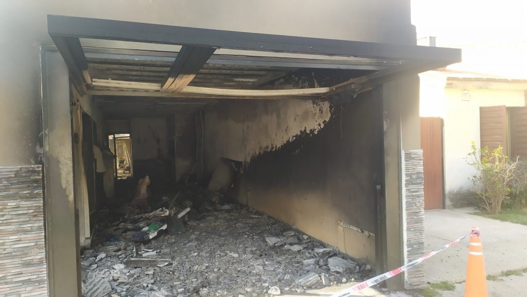 A todo esto, llegaban 3 unidades de bomberos de esa localidad con al menos 9 efectivos. En primera instancia socorrieron a Emiliano Conti y luego procedieron a sofocar las llamas que consumieron el garage en su totalidad, junto a dos motocicletas que estaban en su interior.