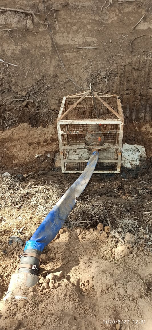 Luego de tener muchas dificultades con la bomba por la tierra y el barro se le hizo una platea de hormigón y se le volvió a colocar el canasto de protección.