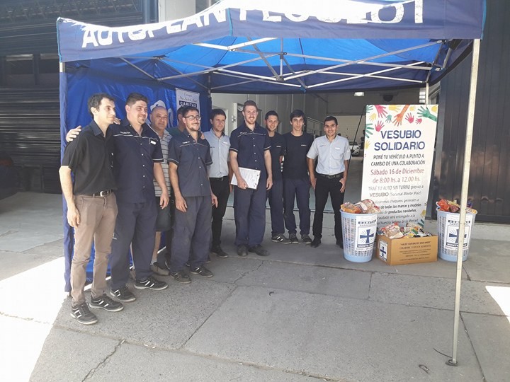 Más de 35 autos hicieron el Control Técnico Vehicular a cambio de productos navideños en Vesubio S. A. Por segundo año consecutivo se llevó a cabo esta campaña solidaria y las donaciones serán entregadas a Caritas Parroquial para que se hagan bolsones y se reparta entre la gente más necesitada. Alexis Allocco, encargado del Taller de la empresa dijo a Canal 2: “Ha sido una mañana muy linda, muy movidita y con mucha más gente que el año pasado. Nosotros somos representantes oficiales de Peugeot pero hoy hemos atendido más vehículos de otras marcas que de la nuestra. Yo vine a las 7:30 hs. esta mañana y la gente ya estaba haciendo fila para entrar y mostrando los productos que traían. Nosotros mismos hicimos una convocatoria dentro de la misma empresa así que entre lo que trajo la gente y nosotros hemos hecho una muy buena campaña”.