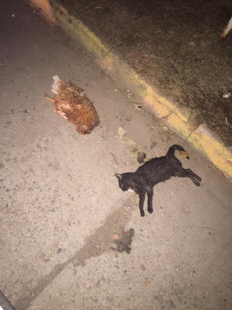 El Periodista Jorge Neyra de esa localidad informó que en el ingreso de este lugar se encontró un gato negro muerto y una gallina también muerta. Además se vio también una especie de banquete en el suelo. El mismo estaba acondicionado con un mantel rojo, postre y una botella de vino.