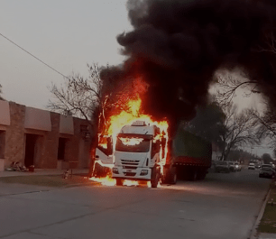 Según nos indicó Rogelio Santi, Jefe de Bomberos Voluntarios de La Playosa, a RADIO CENTRO, el fuego se inició debajo de la cabina y aunque un vecino alertó al conductor, que sería proveniente de una empresa de Córdoba, se propagó con tal rapidez que no pudieron manejarlo y llamaron a los bomberos.