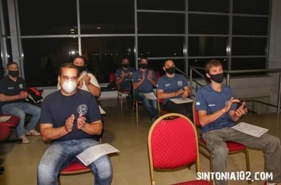 Siguiendo las medidas de prevención por la pandemia de coronavirus los Concejales se hicieron presentes en el Recinto el viernes por la noche y entregaron los reconocimientos a los Bomberos: Germán Schiavetti, Fabián Basualdo, Joaquín Schiavetti, Ever Durpe, Alan Montechiari, Jorge Cardozo, Aníbal Cesano y Bruno Chiarlo.