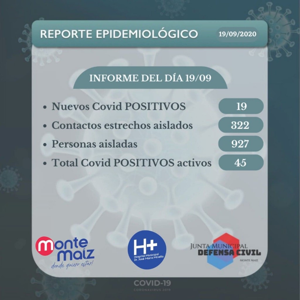 MONTE MAÍZ: 19 CASOS MÁS DE COVID-19