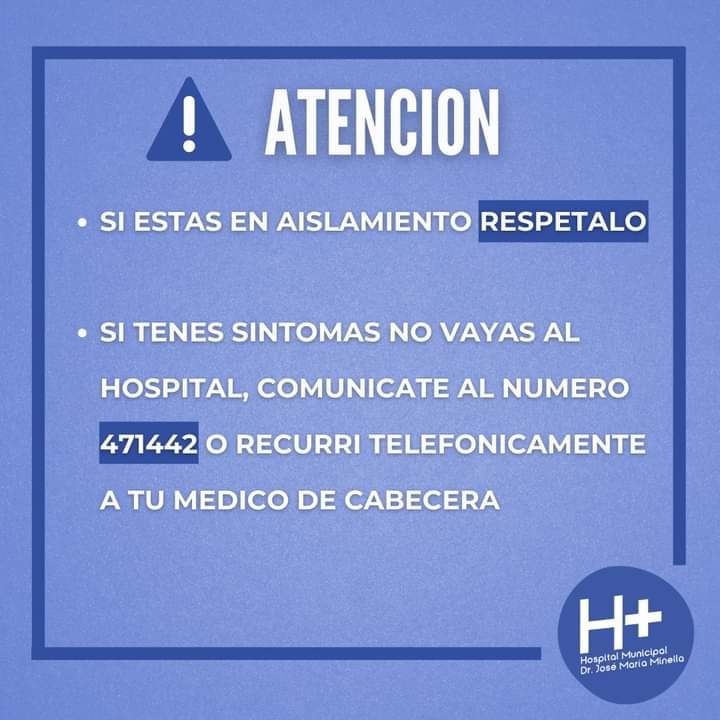 -SI TENÉS SÍNTOMAS NO VAYAS AL HOSPITAL. COMUNICATE AL TELÉFONO: 471442 O CUMUNICATE TELEFÓNICAMENTE CON TU MÉDICO DE CABECERA.