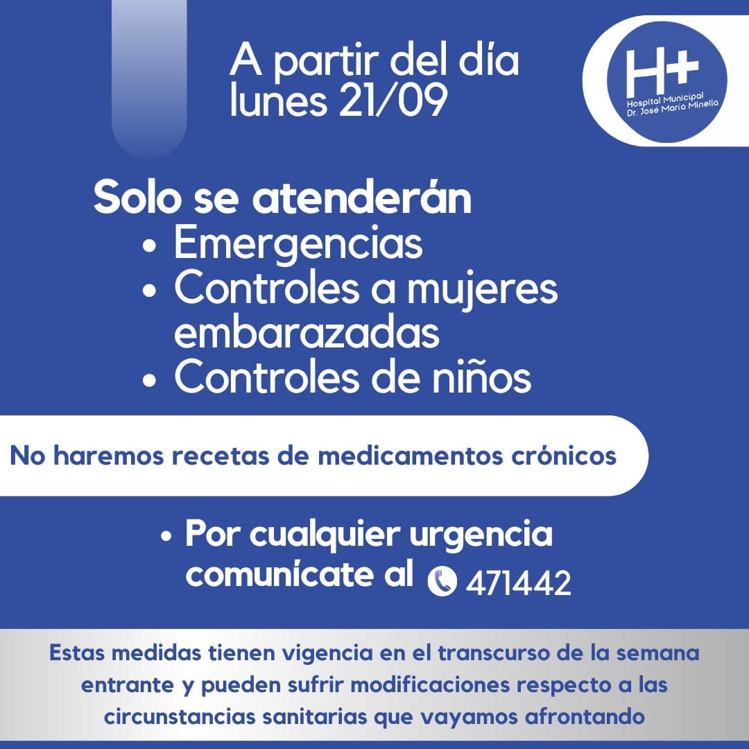 No se harán recetas de medicamentos crónicos. Por cualquier emergencia comunicarse al 471442.