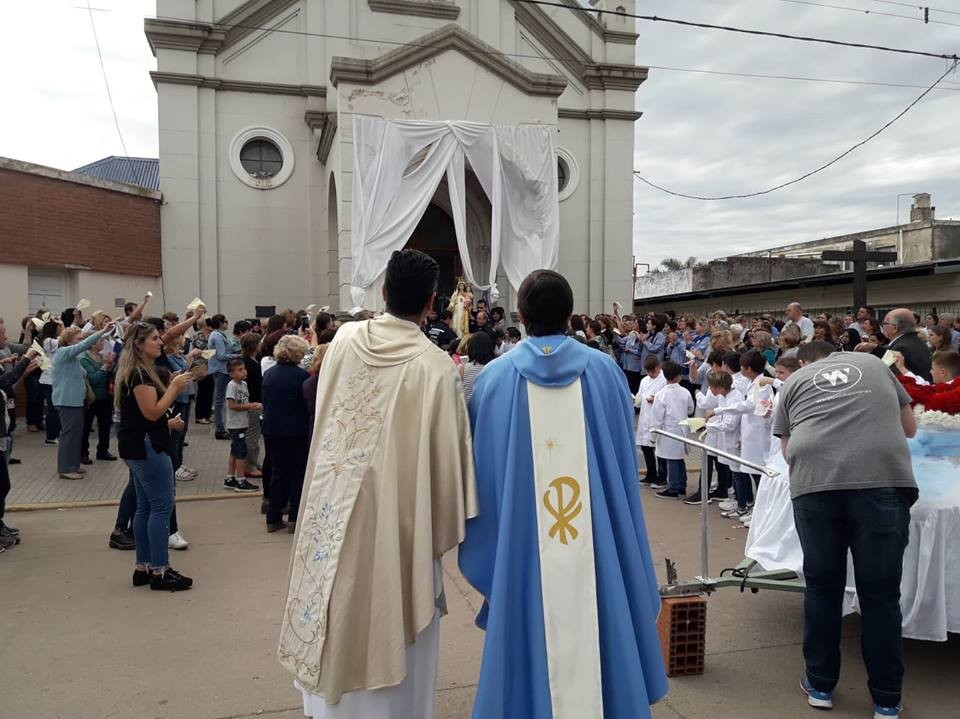 Así mismo, el Padre Martín dijo que quienes escuche el paso de la Virgen por su calle podrá asomarse a la puerta para saludar a la Santa patrona. El recorrido comienza a las 15:00 hs. y se extenderá hasta las 17:00. Hay que recordar que no habrá Misa presencial sino que se podrá ver a través de la cuenta de Facebook de la Parroquia.