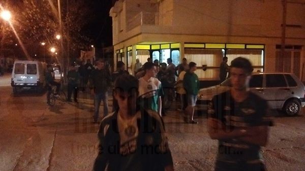 Jugadores, simpatizantes e integrantes de fútbol mayor del Club Corralense se concentraron en la puerta de la Liga Regional Fútbol del Sur para aguardar el informe definitivo del árbitro que dirigió el partido contra Boca de Camilo Aldao.