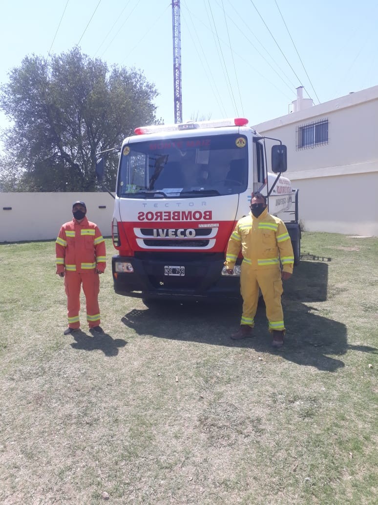 En la tarde de este martes, dos Bomberos Voluntarios del Cuartel de Monte Maíz, Juan Pablo Marrone y Germán Schiavetti, partieron hacia Las Albahacas –Departamento Río Cuarto- a prestar colaboración en los incendios forestales de las Sierras de Córdoba.