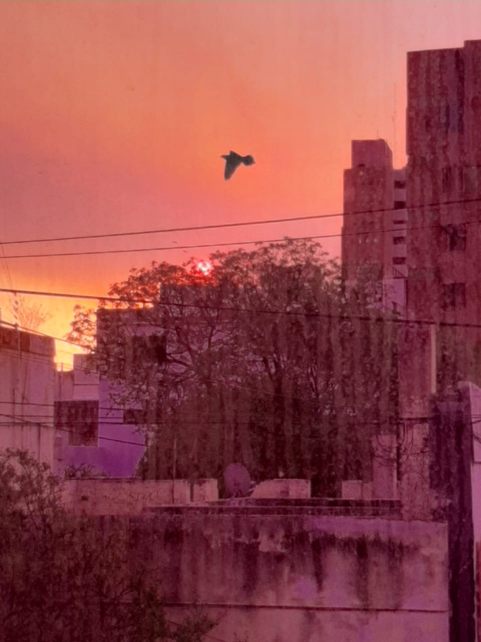 Cenizas que vuelan durante todo el día y que quedan esparcidas por la ciudad y un atardecer rojizo como consecuencia del humo y el reflejo del fuego son algunas de las postales que deja este triste momento.