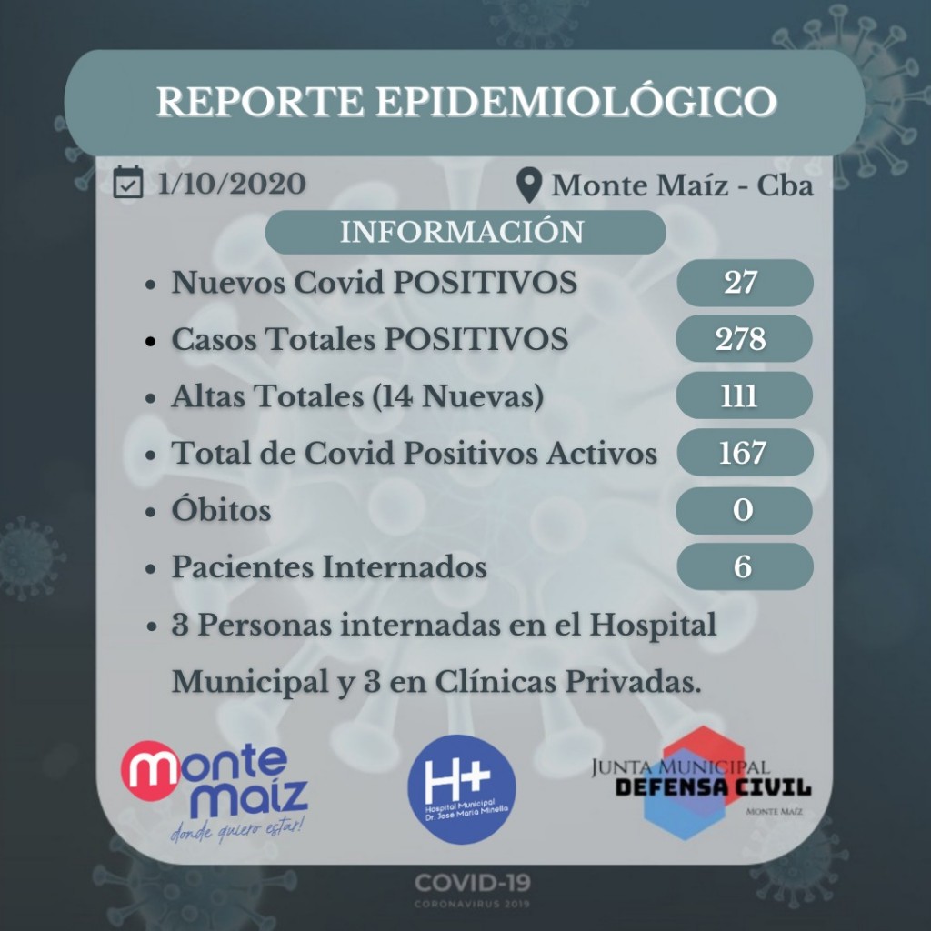 27 CASOS NUEVOS DE COVID-19 EN MONTE MAÍZ