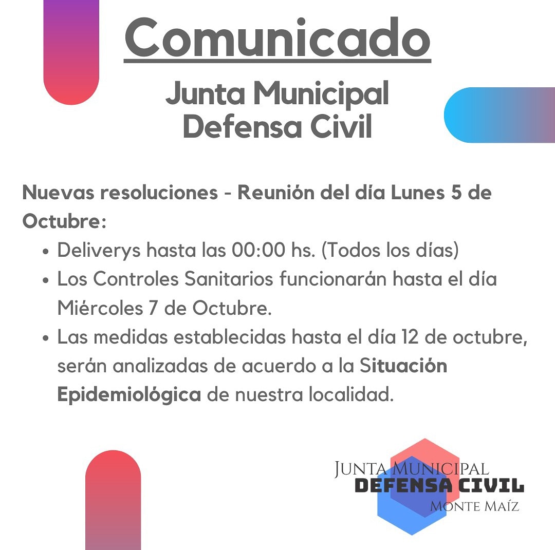 Desde la Junta Municipal de Defensa Civil se anunciará esta tarde que se levantan los controles sanitarios ubicados en los ingresos a Monte Maíz, sobre calle Chubut y en calle Santa Cruz.