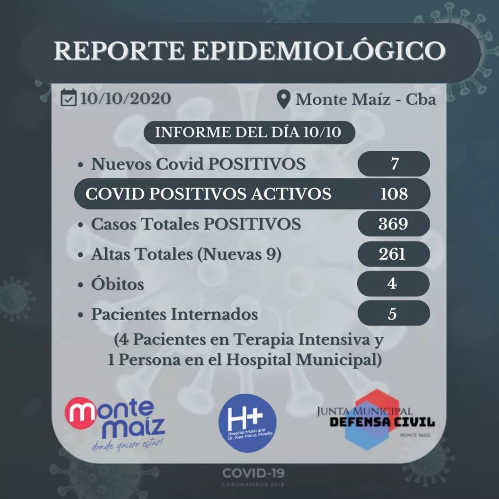 Esto hace un total de 369 casos de coronavirus desde el comienzo de la pandemia. De ellos, 108 son casos activos, 261 los recuperados, 4 fallecieron y 5 están internados: 4 en terapias intensivas y uno en el Hospital Municipal.