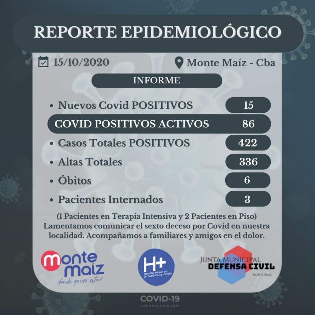 15 CASOS NUEVOS DE COVID-19 EN MONTE MAÍZ