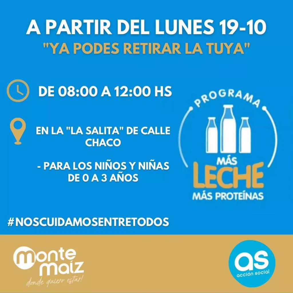 A partir del lunes 19 de octubre, las familias con niños entre 0 y 3 años podrán retirar la leche del programa provincial “Más Leche Más Proteínas”.