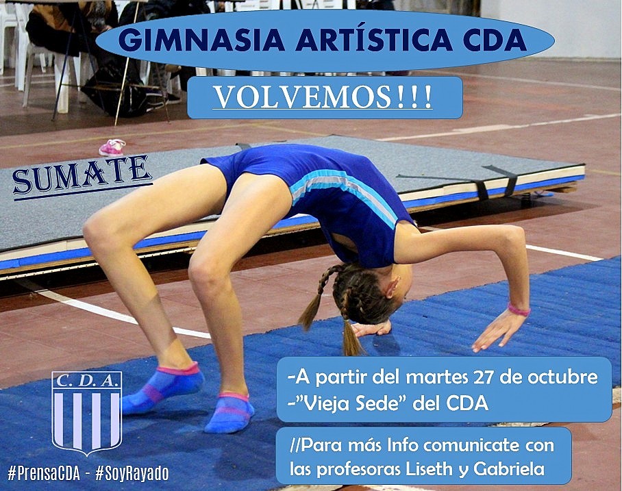 El próximo martes 27 de octubre la escuela de gimnasia artística del Club Deportivo Argentino retomará sus clases en las instalaciones de la "vieja sede". Bajo un estricto protocolo de bioseguridad los alumnos entrenaran en grupos reducidos y cada gimnasta deberá contar con el kit de higiene personal (alcohol en gel, tapabocas, etc) y respetar el distanciamiento correspondiente.