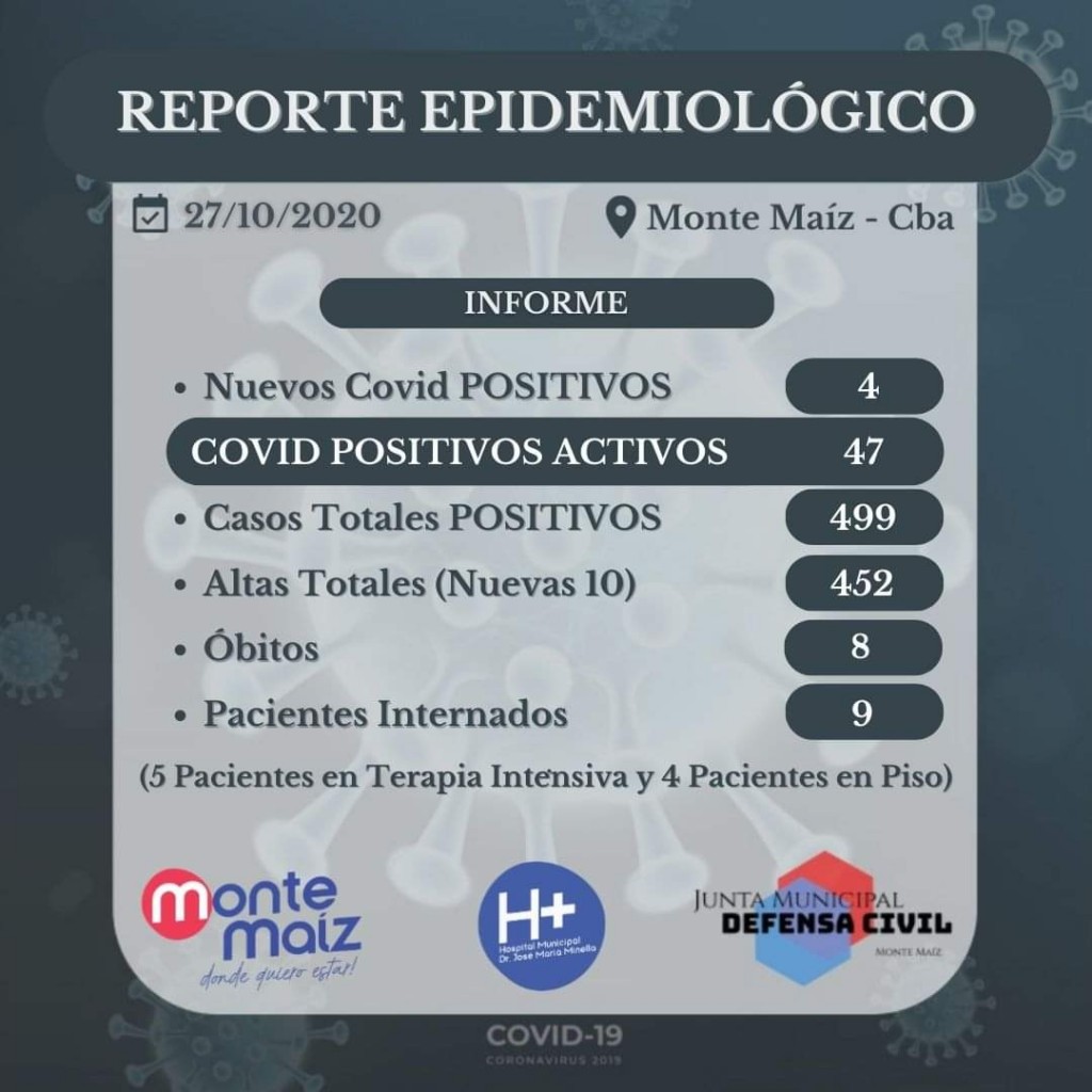 4 CASOS NUEVOS DE COVID-19 EN MONTE MAÍZ