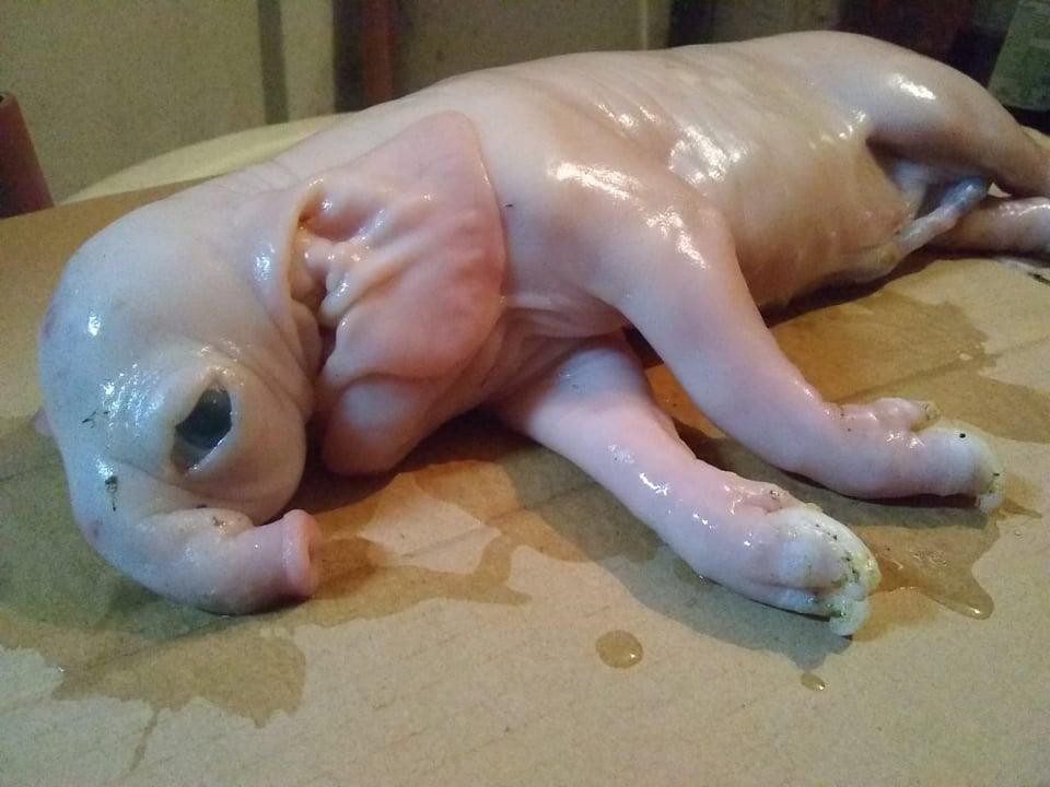 UN CERDO CON UNA MALFORMACIÓN. NACIÓ CON UNA ESPECIE DE TROMPA DE ELEFANTE. NO SOBREVIVIÓ POR PROBLEMAS RESPIRATORIOS