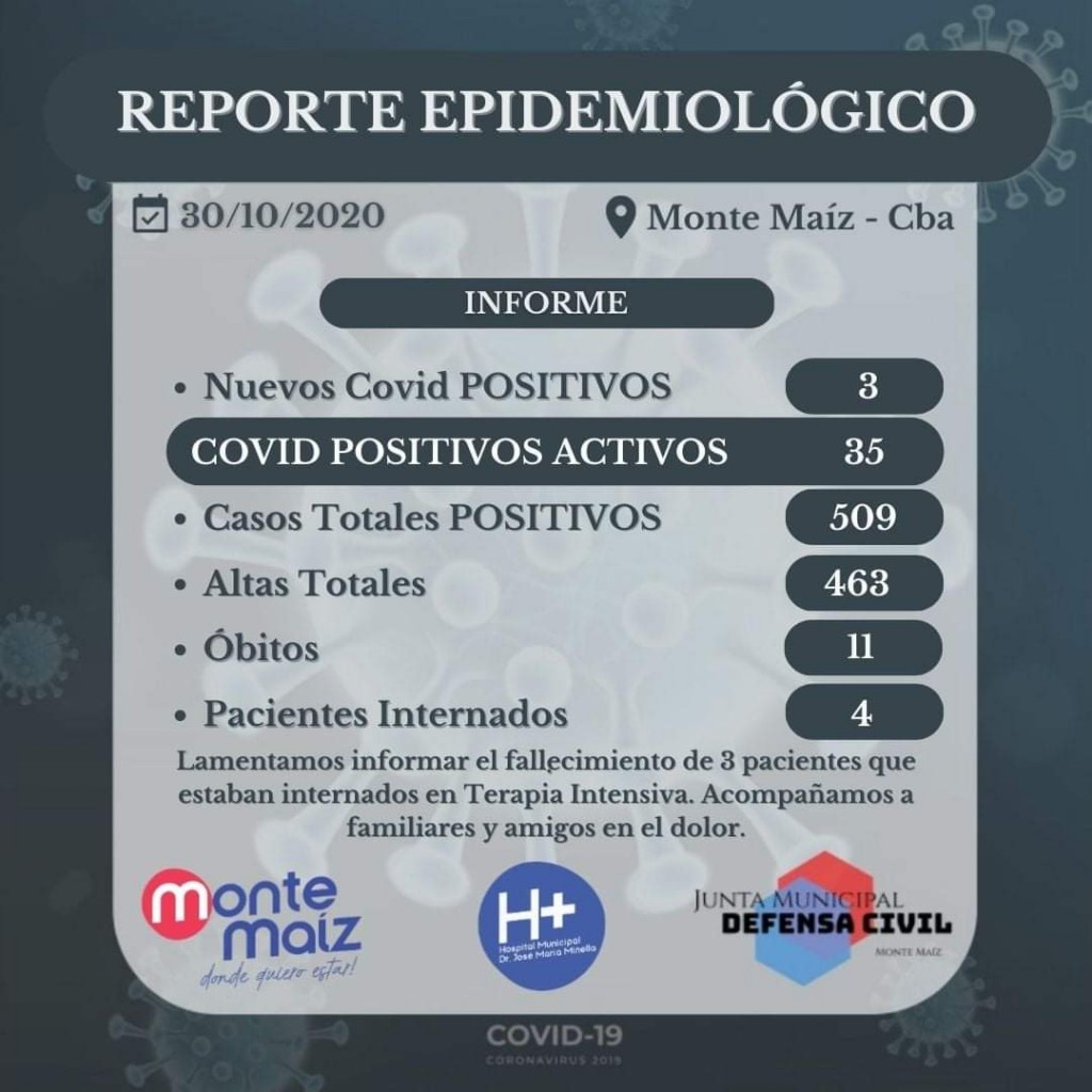 3 DECESOS MÁS POR CORONAVIRUS EN MONTE MAÍZ