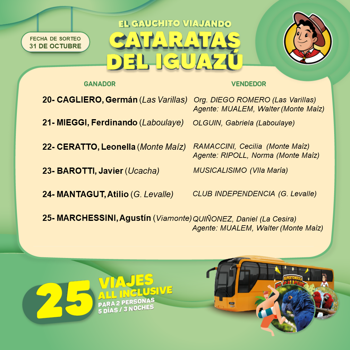 ¡Felicitaciones a los 25 participantes que se llevan 1 Viaje para 2 personas con servicio All Inclusive!