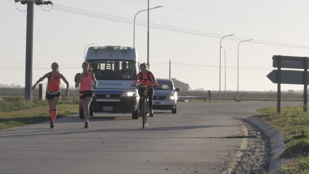 Durante el trayecto recorrido las deportistas fueron guiadas por el m�vil de Seguridad Ciudadana para resguardar la integridad f�sica de las maratonistas en la ruta y fueron seguidas de cerca por la ambulancia del Hospital Municipal con el Param�dico Emanuel Romero.