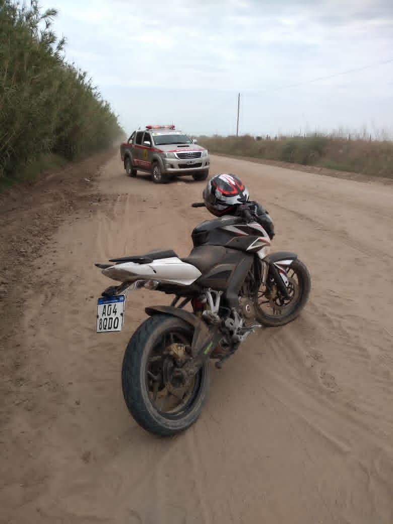 A las 10:30 hs. de este domingo Bomberos Voluntarios de Monte Maíz fueron convocados al camino que va hacia Colonia Barge por un accidente de moto.