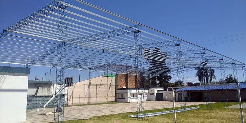 La prioridad es utilizarlo como salón de deportes, pero también para eventos en general. En la pista están los arcos donde hacemos el tradicional torneo de baby fútbol sobre cemento, están las jirafas con los aros de básquet, y también se juega al vóley allí. Tendrá fundamentalmente la utilidad de un salón de deportes, y que el día de mañana también se pueda alquilar para fiestas.