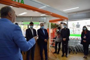 En Oncativo, el ministro de Industria, Comercio y Minería, Eduardo Accastello, acompañado por el secretario de Comercio, Juan Pablo Inglese; y el intendente, Gastón Re; inauguró este sábado una góndola del programa Hecho en Córdoba en el supermercado Almacor, la primera del interior provincial.