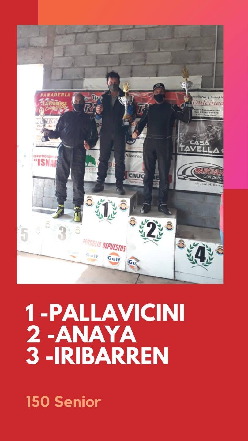 Finalmente, en 150 Seniors, el ganador fue Mario Palaveccino, de Vicuña Mackenna; el segundo lugar fue de Ariel Anaya (Monte Maíz) y el tercer puesto se lo adjudicó el laboulayense José María Ibarren. En esta carrera también participó el montemaicino Hugo Favre aunque no completó la prueba por un desperfecto mecánico.