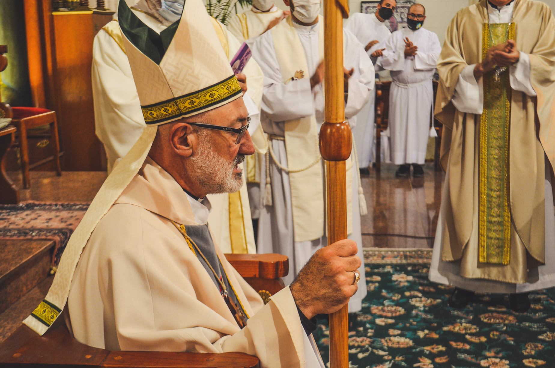 Finalmente el tercer elemento: permanecer con el rebaño. Es la condición para conocer verdaderamente como pastores al propio rebaño, cuidándolo con la enseñanza, la administración de los sacramentos y el testimonio de vida. Qué seas un pastor acogedor, en camino con tu gente, con afecto, con misericordia, con dulzura del trato y firmeza paterna, con humildad y discreción… También que puedas mirar tus limitaciones con paz, tal como dice Francisco en su última Carta apostólica: “…San José nos enseña que tener fe en Dios incluye además creer que Él puede actuar incluso a través de nuestros miedos, de nuestras fragilidades, de nuestra debilidad. Y nos enseña que, en medio de las tormentas de la vida, no debemos tener miedo de ceder a Dios el timón de nuestra barca…”