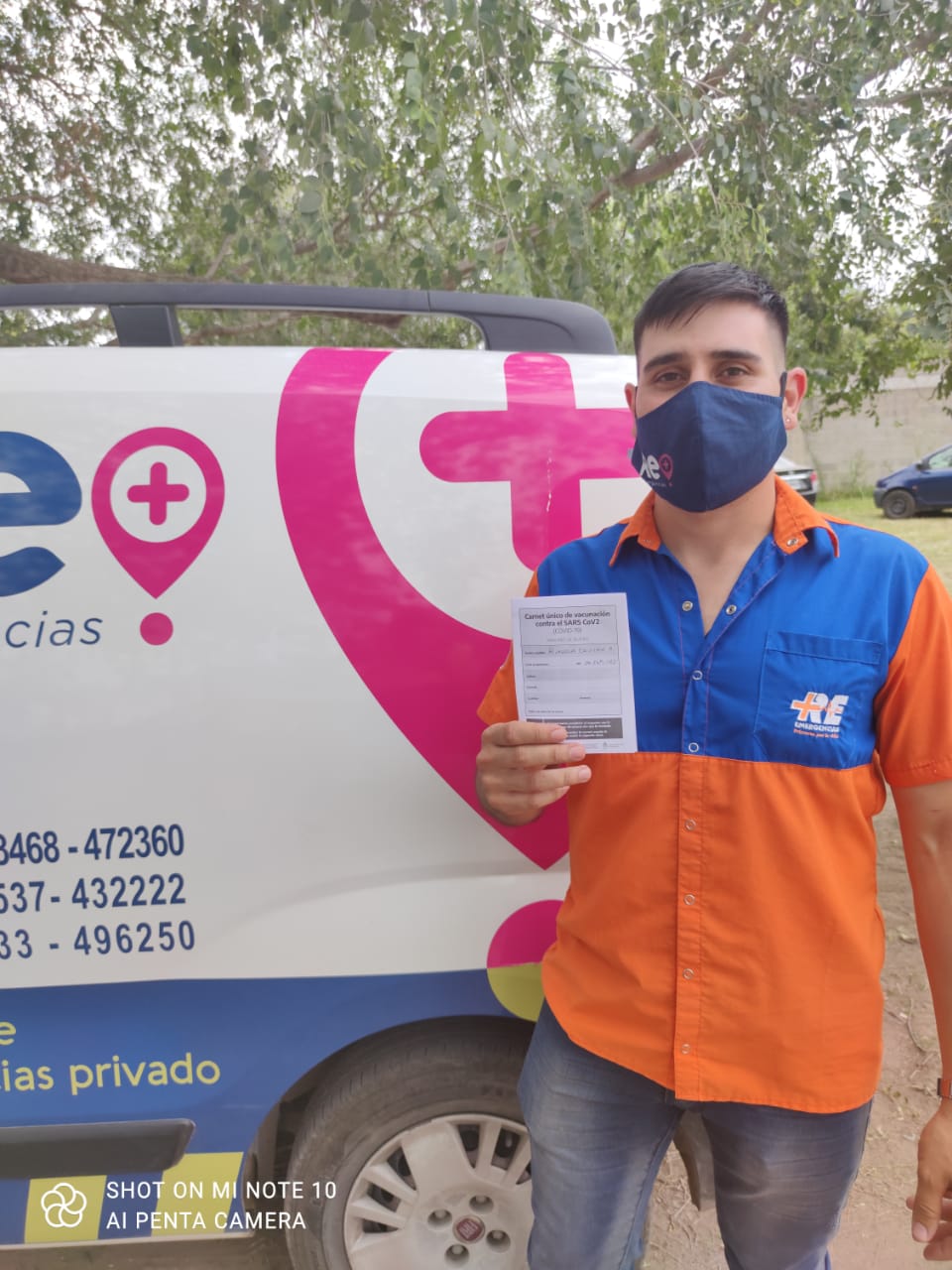 Personal de salud de la empresa Re Emergencias de Monte Maíz viajaron a la ciudad de Bell Ville para vacunarse contra el COVID-19. Participaron del operativo que se lleva a cabo en el Hospital José Ceballos de la cabecera del Departamento Unión.