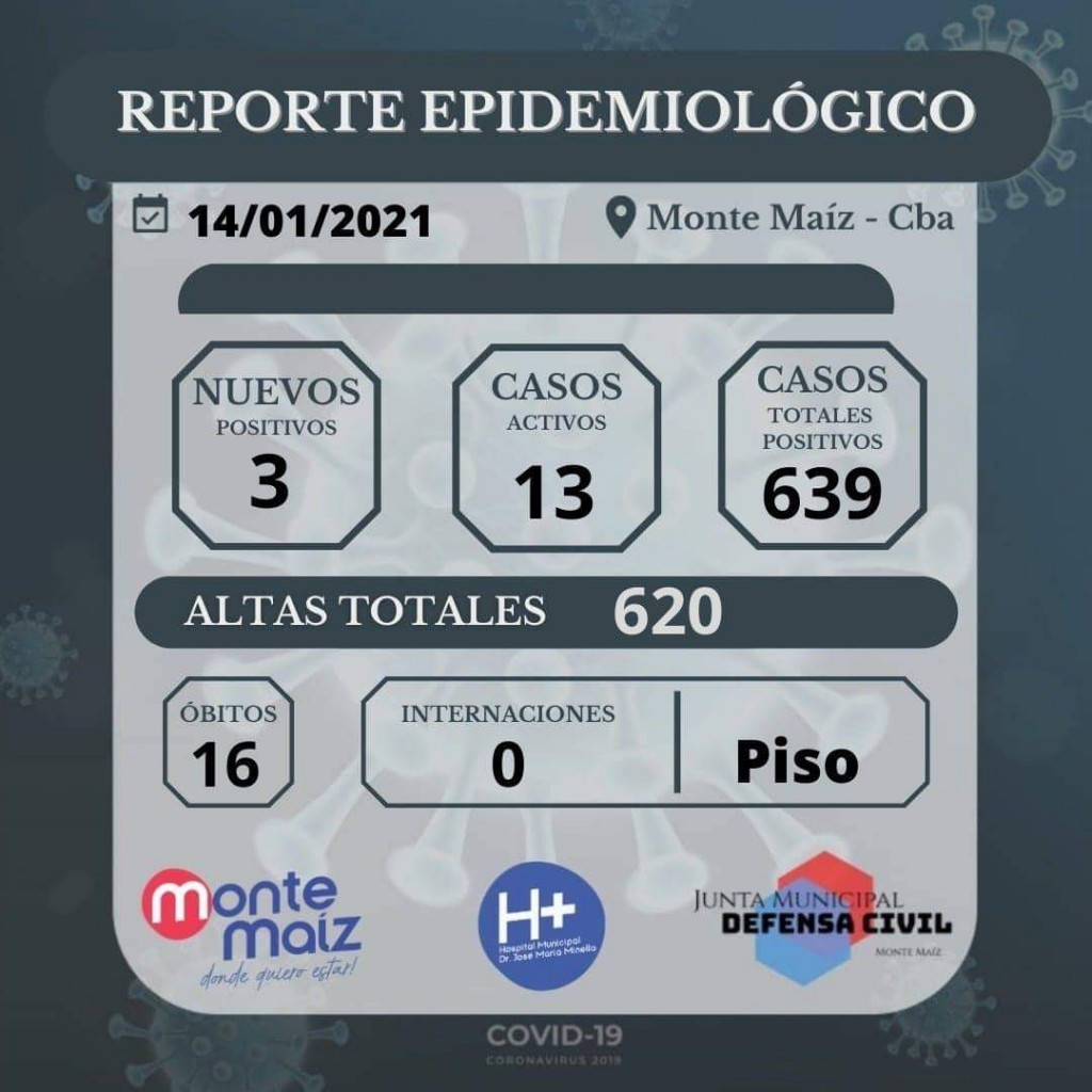 El informe epidemiológico de esta tarde emitido por el Hospital Municipal confirmó 3 casos nuevos de COVID-19 en nuestra localidad. De esta manera, se contabilizan 639 casos de coronavirus desde el comienzo de la pandemia.