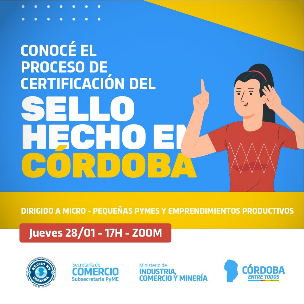 Durante el evento se explicara?n los pasos a seguir para la obtencio?n del certificado y se conocera?n experiencias de PyMEs que ya cuentan con el sello #HechoEnCo?rdoba.