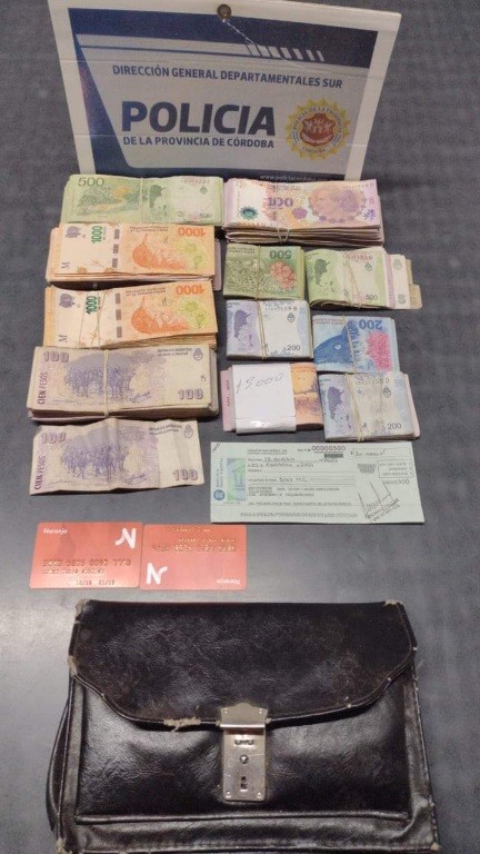 Se secuestró una cartera de cuero (tipo sobre) de color negra, un cheque del Banco Nación por el importe de $10.000, dos tarjetas de crédito y un DNI. También se logró dar con la suma de $256.585 en efectivo.