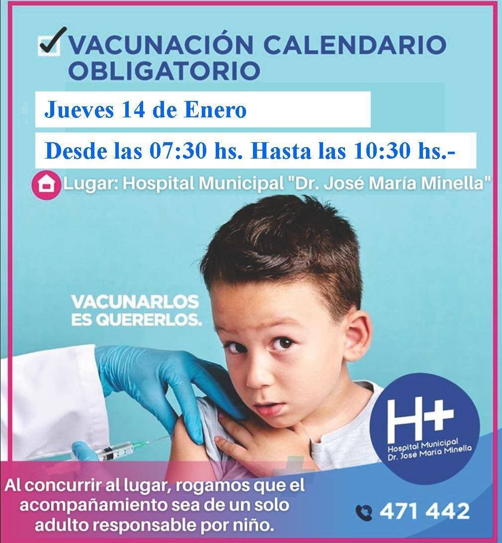 El Hospital Municipal, Dr. José María Minella informa a la población que mañana, jueves 28 de enero de 2021 se llevará a cabo una jornada de vacunación de niños, correspondiente al calendario obligatorio.