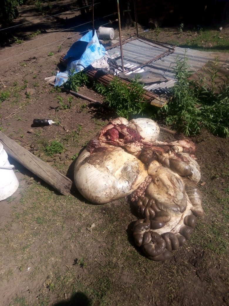 El procedimiento se realizó en una vivienda de calle Gobernador Roca S/N arrojando resultado Positivo. Allí se procedió al secuestro de unos 200 kilos de carne, una chaira y 4 cuchillos de carnicería. Todos estos elementos estarían relacionados a la faena del animal.