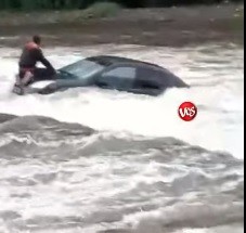 AUTO ARRASTRADO POR EL RÍO