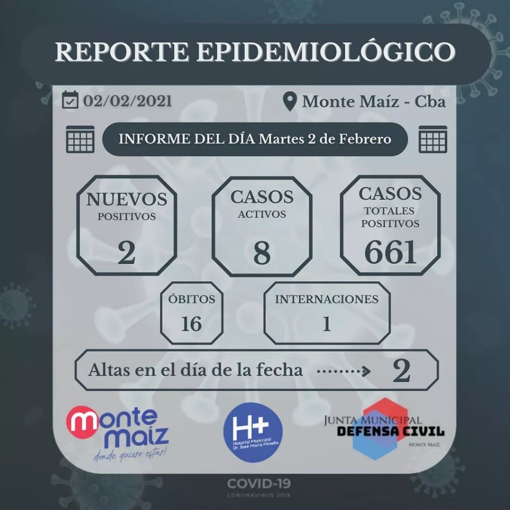 Desde el Hospital Municipal se confirmaron 2 casos más de COVID-19 en Monte Maíz. De esta manera, se contabilizan 661 casos desde el comienzo de la pandemia.