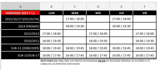 Categorías Sub 15 y Sub 17 Lunes a viernes de 17 a 18:45 hs.