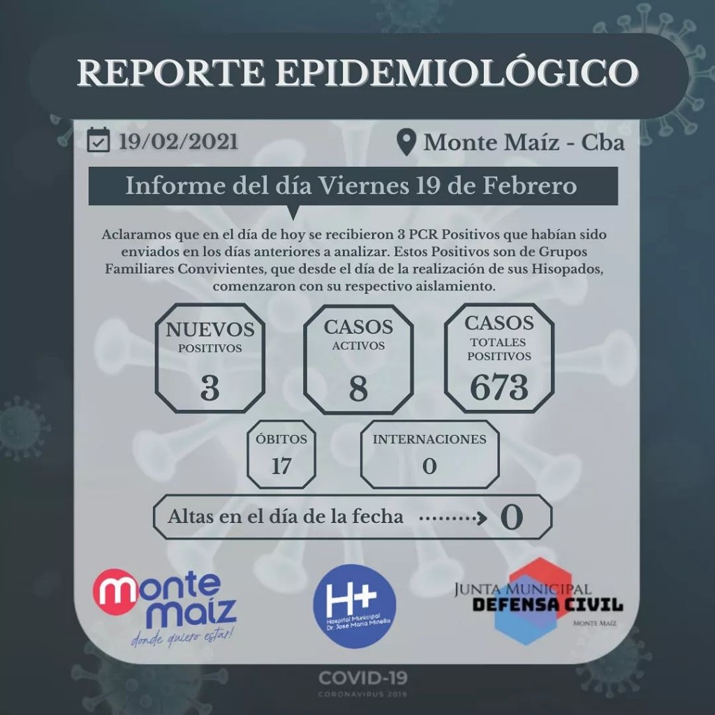 3 CASOS NUEVOS DE COVID-19 EN MONTE MAÍZ