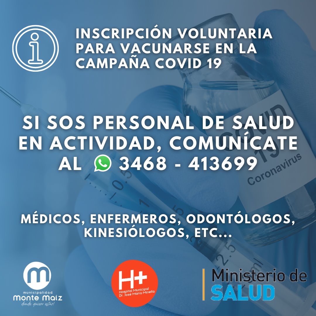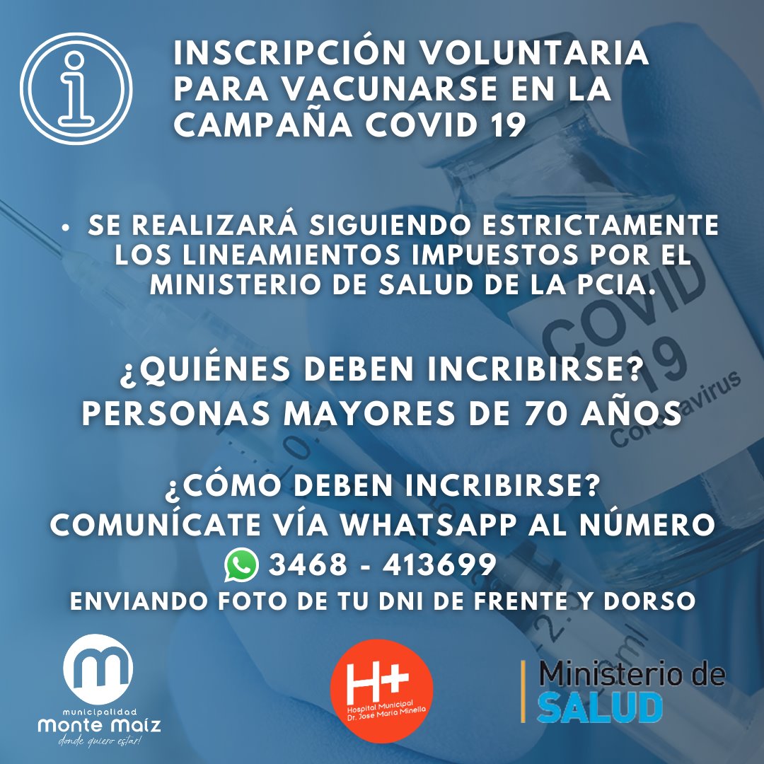 Desde el Hospital Municipal Dr. José María Minella se informa a la población que está en marcha la inscripción voluntaria para la vacunación contra el COVID-19.