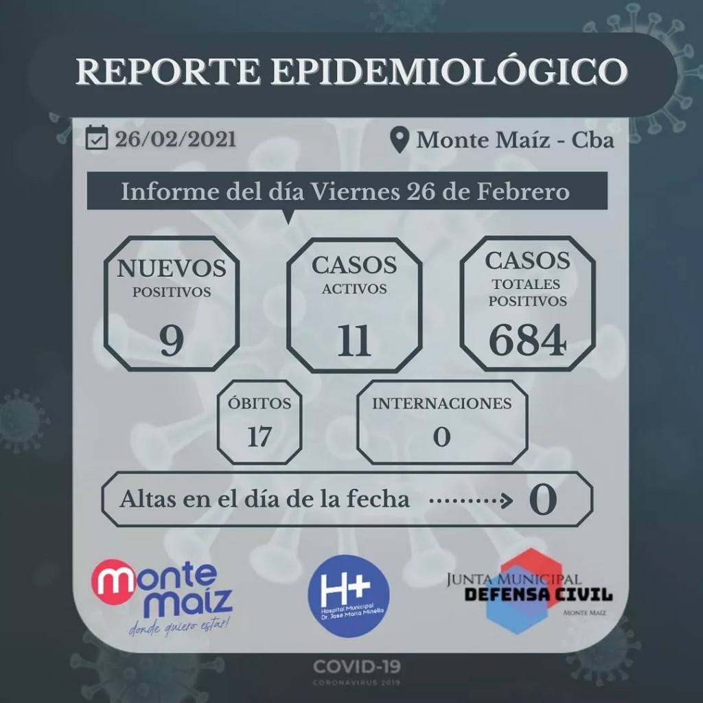 9 CASOS NUEVOS DE COVID-19 EN MONTE MAÍZ