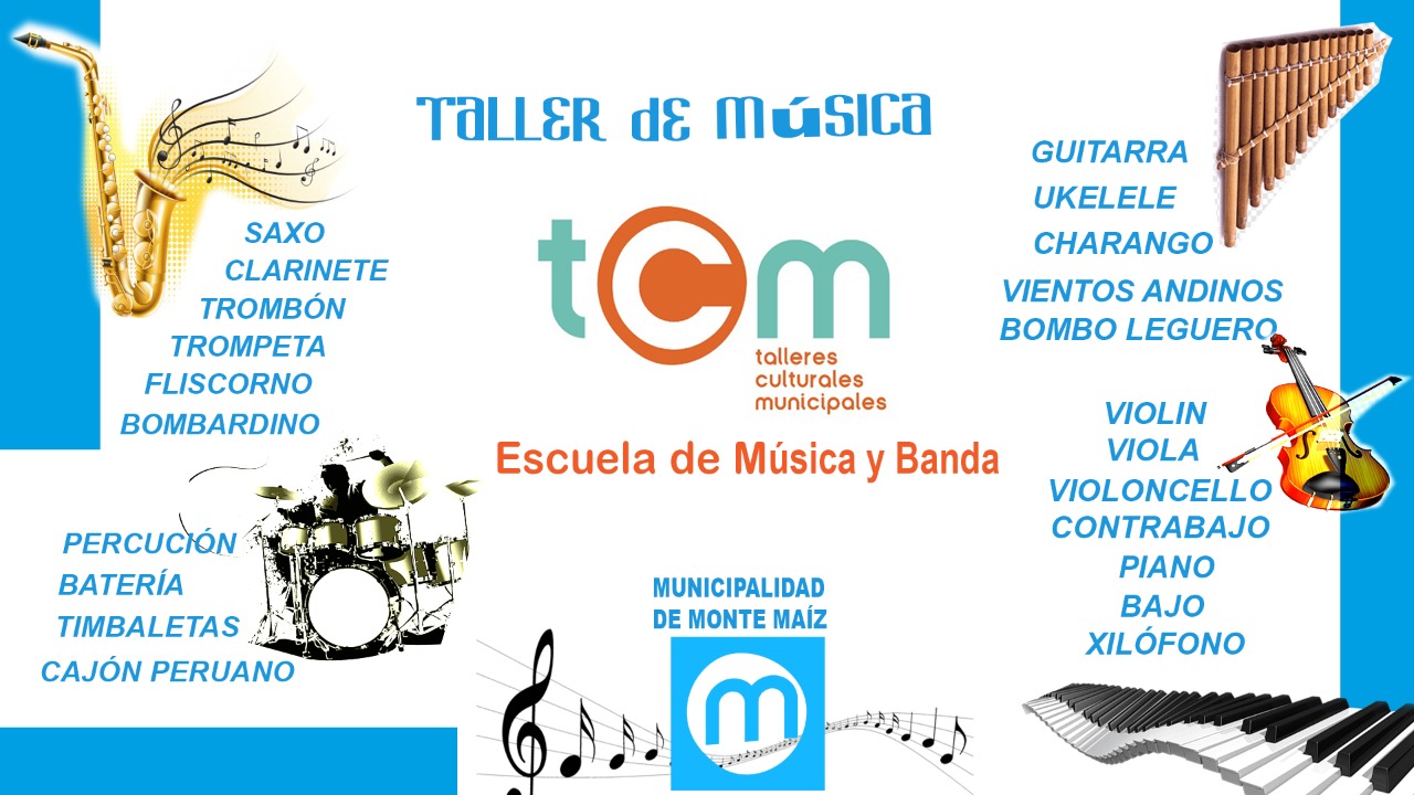 Taller de Música: Saxo, clarinete, trombón, trompeta, fliscorno, bombardino. Guitarra Ukelele, charango, vientos andinos, bombo leguero. Percusión, batería, timbaletas, cajón peruano. Violín, viola, violoncello, contrabajo, piano, bajo, xilófono.
