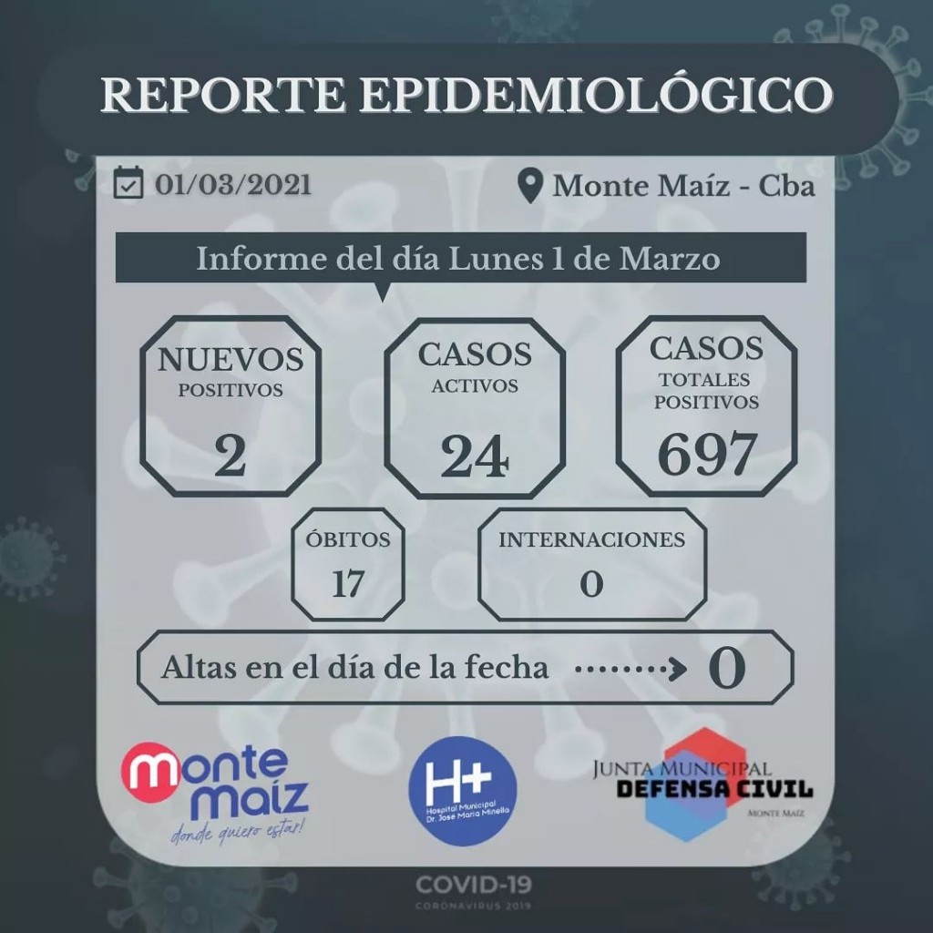 2 CASOS NUEVOS DE COVID-19 EN MONTE MAÍZ